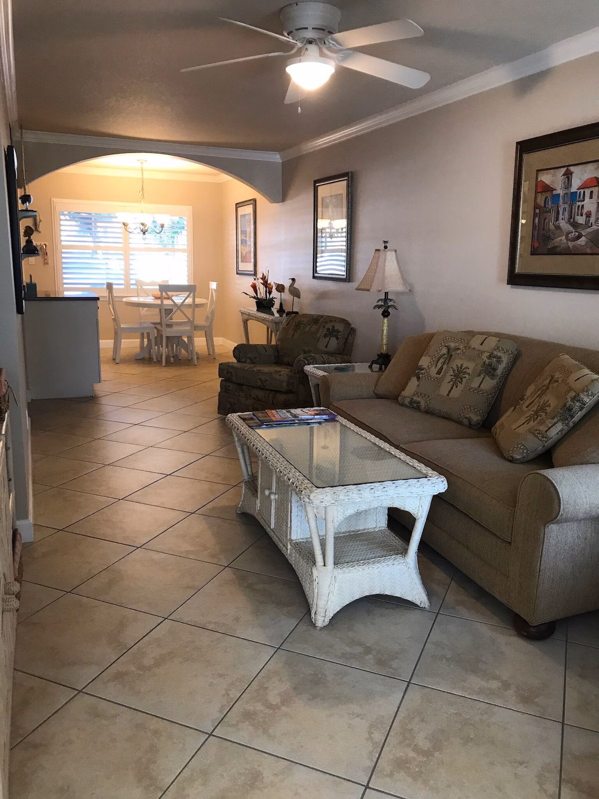 Discover your dream vacation at our exquisite Key West-style condo, a charming one-bedroom, ground-floor haven. Step inside to find a bright and airy living space adorned with elegant white rattan furnishings, creating a relaxed yet sophisticated ambiance. The separate Florida room offers a delightful extension of your living area, perfect for enjoying the gentle breezes and scenic views.